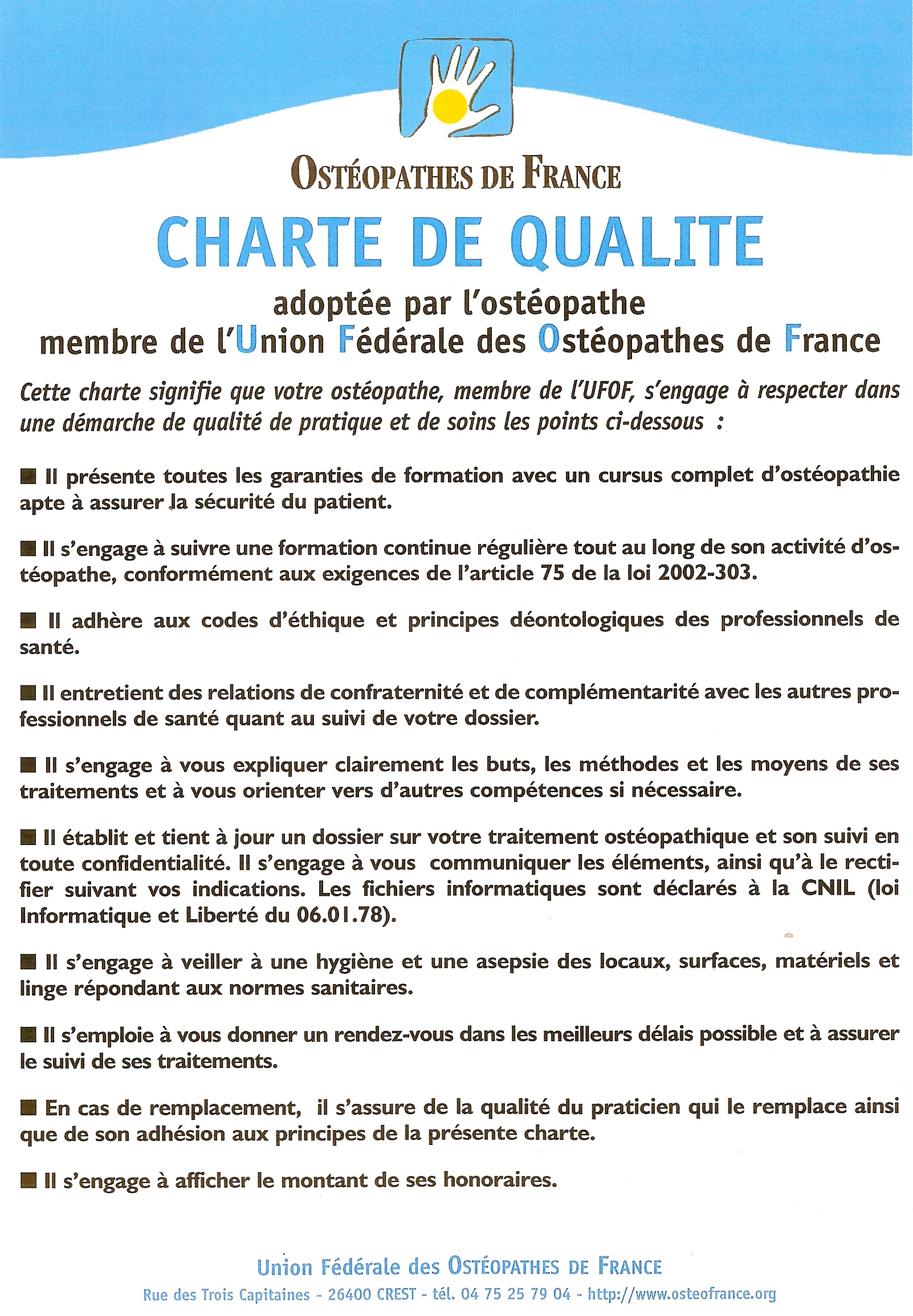 du titre professionnel d'ostéopathe (ARS) et suis membre